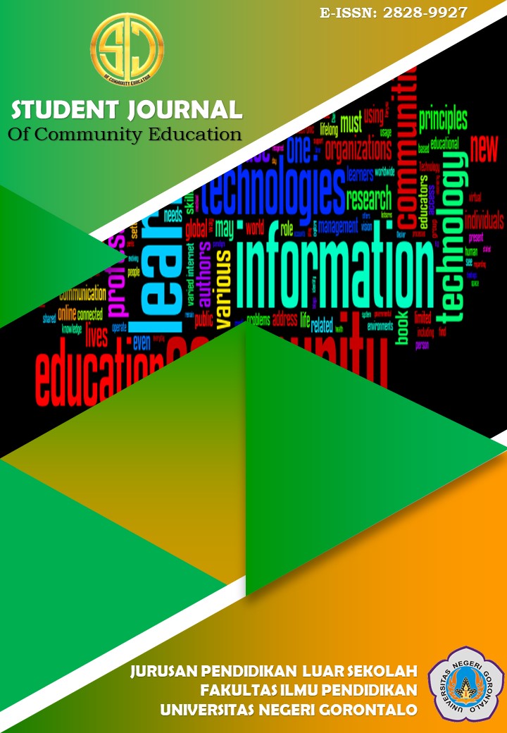 Abdullah, Pelia, ATA Ummyssalam Duludu, and Icam Sutisna. 2022. "Deskripsi Karakteristik Pembelajaran Orang Dewasa Pada Program Paket C Di SKB Kota Gorontalo." Student Journal of Comunitty Education 31-41.